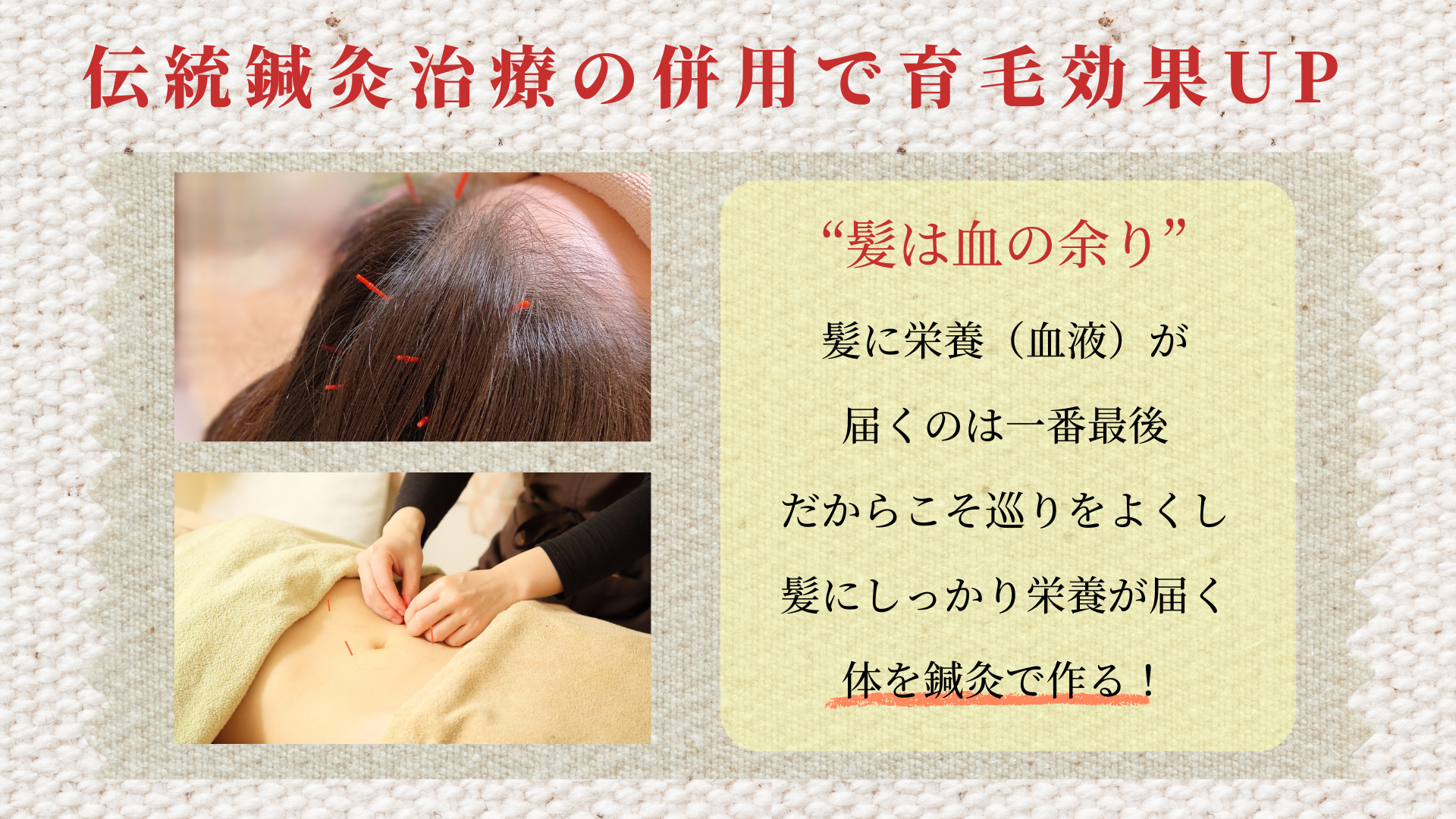 髪を強く、そして生える土台を作る! 東洋医学で髪は“血余”血の余りといいます。血液がしっかり作られる体内環境と、それを行き届かせる流れ(血流)を作ることが髪を増やす最短ルートです アール自由が丘の育毛・発毛鍼灸3つの特徴 ビフォーアフター コースの流れ 料金 鍼灸Q&A 鍼灸Q&A ブログ ブログ よくある質問 よくある質問 RESERVATIONご予約 24時間ネット予約はこちら LINEで相談してみる Instagramでお役立ち情報配信中♪ Instagram 投稿 17901051927276511 髪は血の余り 鍼灸で巡りの良い体へ Instagram 投稿 18009595736786313 Instagram 投稿 18281680330284001 東洋医学で春は肝臓に♪ ただ肝臓だ 体質改善で花粉症は改善します♪♪ a_ru.jiyugaoka ⬇︎各種SNSでお役立ち情報配信中⬇︎
